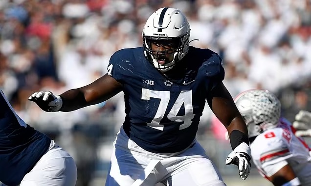 Olu, a 21 year old, 6’6” 317 lbs Offensive Tackle out of Penn State University. Olu runs a 4.33-second 40 yard dash. Fashanu started 12 games at left tackle for the Nittany Lions last season and allowed a whopping ZERO sacks in 382 pass-blocking snaps. Fashanu, in his college career has played 1,285 snaps, allowed ZERO sacks, ONE Qb hit (NYJetsTFMedia // X)