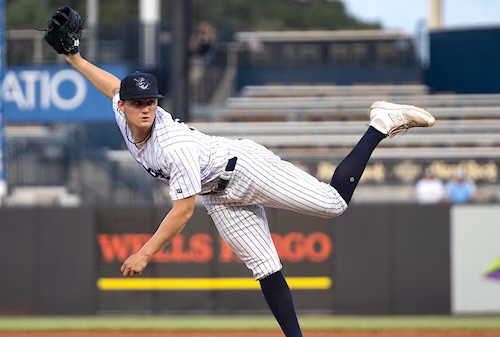 Cunningham is another one of the Yankees top arm in their farm system, he was drafted in the second round by the Yankees last year in what turned out to be a very pitching heavy draft for them. Like Ben Hess, a fellow SEC arm, Cunningham didn’t put up the best college stats, putting up a 4.36 ERA in 84.2 innings of work last year for Vanderbilt. But the Yankees really like Cunningham’s stuff. He possesses a mid 90s fastball that can touch 97 at its highest. Arguably his best pitch is his changeup, because of its significant fade and sinking action, it was one of the most effective pitches in college baseball last year, and it was a pitch that he was consistently able to generate whiffs on. His slider is his third offering, and it doesn’t grade out as high as his changeup does, but don’t be surprised if his slider becomes a very effective swing and miss pitch this season. Developing sliders and changeups is something the Yankees have done fantastically in recent years. Cunningham has the potential to be a middle of the rotation arm, and I think he’ll be a fast riser in the system, similar to how Drew Thorpe was in 2023, but the difference between Cunningham and Thorpe is that Cunningham is more polished coming into the pro level, and he also has a more effective fastball, something that will definitely aid his development.